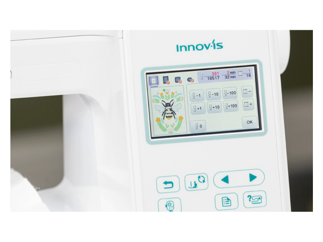 Dai vita al tuo stile sul touchscreen LCD a colori e aggiungi il tuo tocco unico con i 193 ricami, 55 dei quali presentati per la prima volta nella serie F! Le parole sorgono spontanee con i 13 font inclusi. Ancor di più se li combini con la funzione di editing su schermo. Usa il touchscreen LED a colori per capovolgere, ruotare, cambiare i colori e ripetere ricami e testo. Esperti o principianti del ricamo apprezzeranno la facilità di utilizzo di Innov-is F540E, con il sistema avanzato di infilatura dell’ago, la regolazione della velocità, la spolina ad inserimento rapido ed il sistema semplificato di infilatura. Niente può limitare il tuo potenziale creativo. La funzione LAN wireless ti permette di trasferire facilmente i ricami alla macchina e collegarti ad Artspira, il nuovo hub creativo!